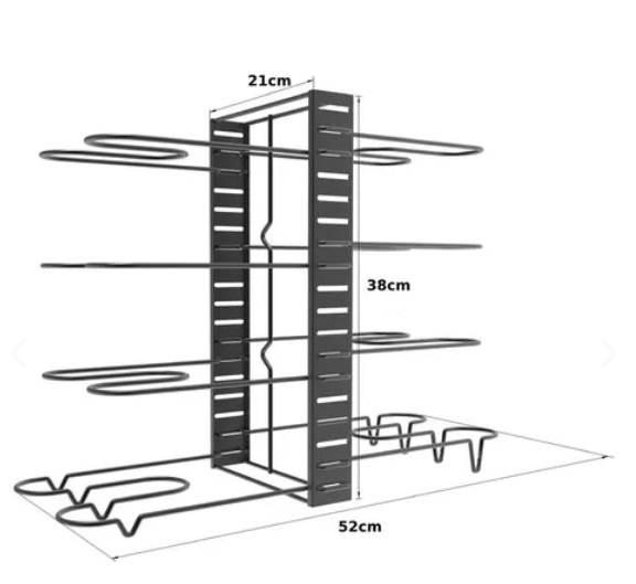 🔝 Gran capacidad de almacenamiento: Soporta hasta 8 sartenes, ollas o planchas de varios tamaños. Ajusta la altura y posición según tus necesidades. 💪